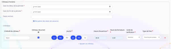 Pour finaliser l’activité périscolaire, il vous faut remplir l’ensemble des données concernant les horaires.