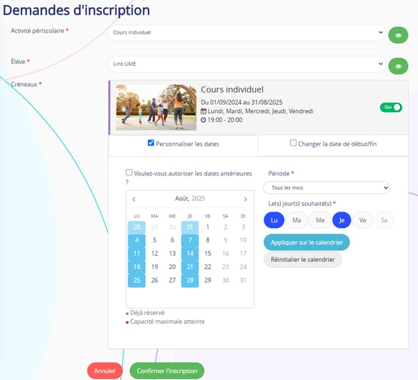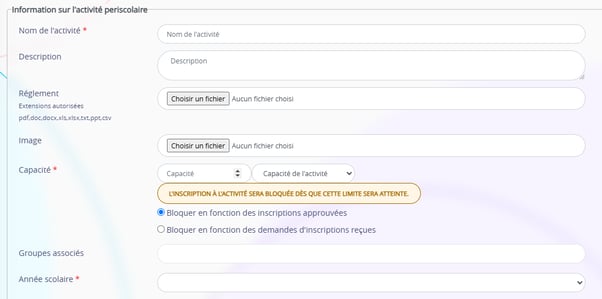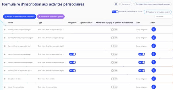 Personnaliser le formulaire d’inscription aux activités périscolaires