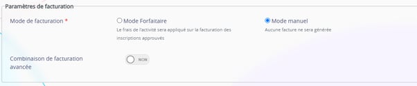 Par la suite, je remplis également les informations concernant les paramètres de facturation. Il existe 4 modes de facturation :