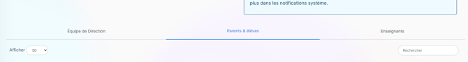 En tant que directeur, je peux informer les parents du lancement de ma campagne. Pour cela, je commence par configurer l'e-mail envoyé depuis le menu Notifications du système. Je sélectionne "Parents & élèves" en haut de la liste :