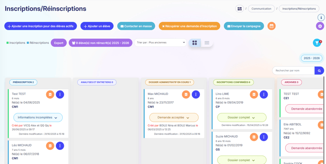- Vos inscriptions confirmées : Notre fonctionnalité vous permet de classer avec précision les dossiers de vos futurs élèves.