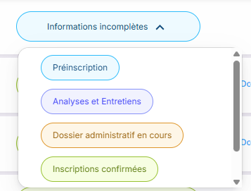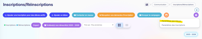Le bouton paramétrage des statuts en haut à droite, vous permet de configurer vos étapes d’inscription.